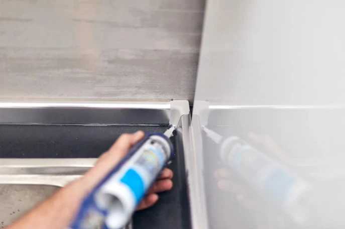 - Высокая влажность и плохая вентиляция. На кухнях, ванных комнатах, бассейнах и саунах стандартные акриловые герметики теряют цвет и прозрачность очень быстро. Здесь необходимы силиконовые или гибридные формулы с противогрибковыми добавками.